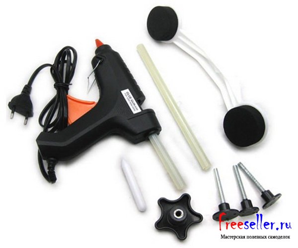 Сам прибор больше относиться к любительскому, назвать его профессиональным нельзя, но удалить небольшие вмятины типа "хлопушка" с его помощью реально и очень просто.