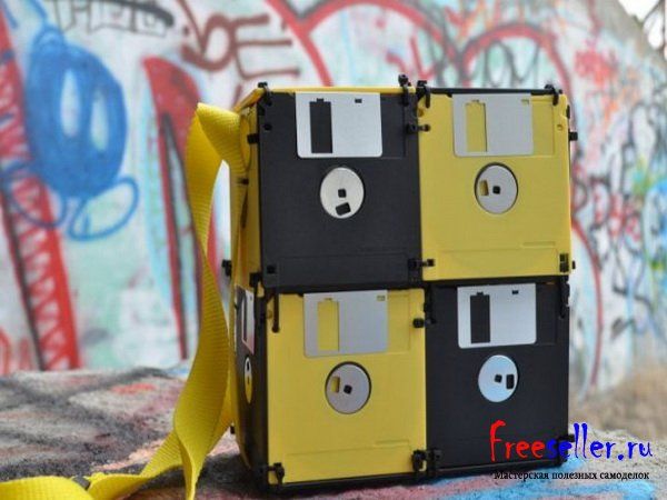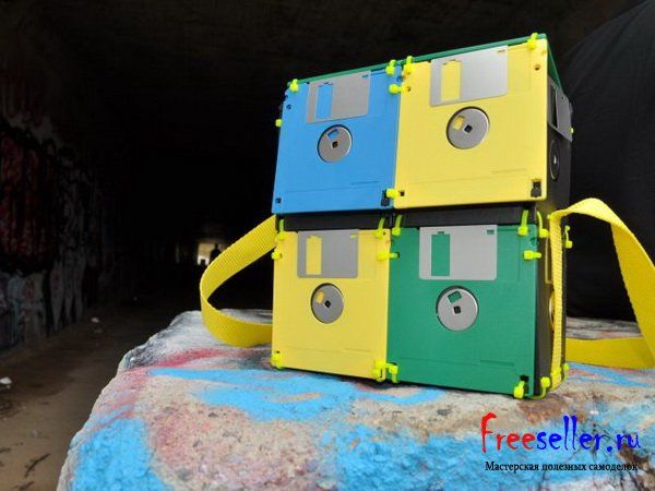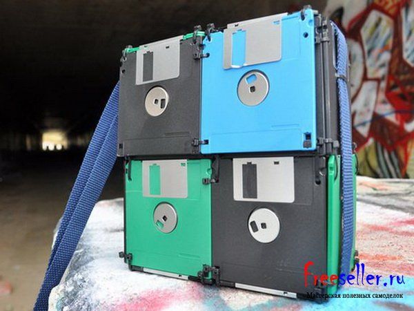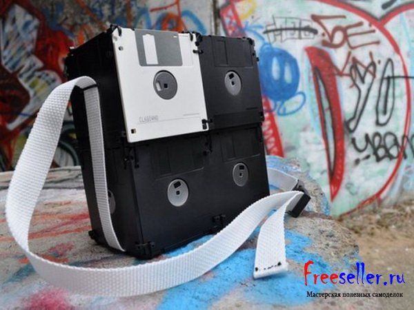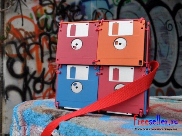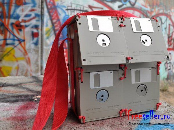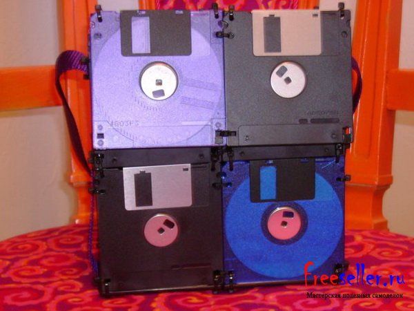 Об изготовлении самодельной сумки из дискет, уже писалось ранее в этой статье>>