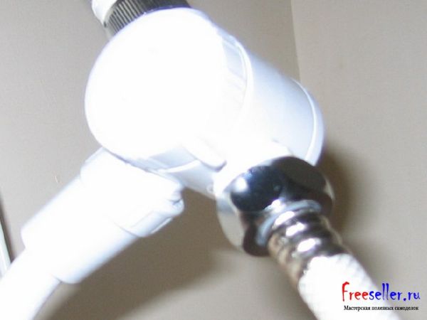 Подключите душевой шланг к смесителю. Если Вы планируете оставить еще и стандартную душевую лейку, то необходимо найти и приобрести специальный переключатель на 2 направления.
