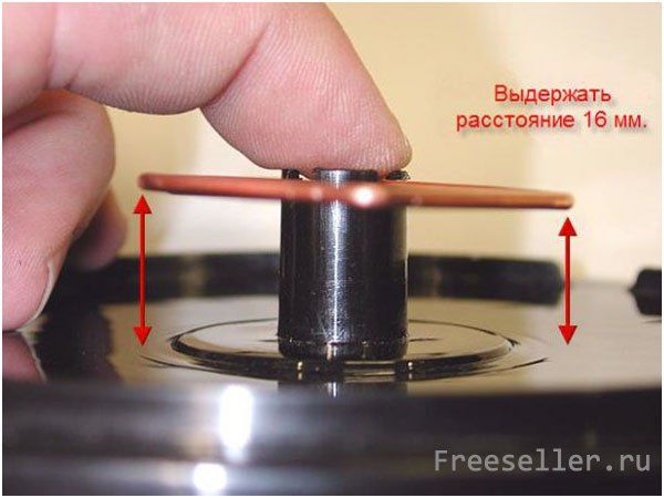 Шаг 6: Монтируем двойной ромб на шпиндель, при этом обращаем внимание на то чтобы расстояние от ромба до дна шпинделя было равно во всех точках по 16 мм.