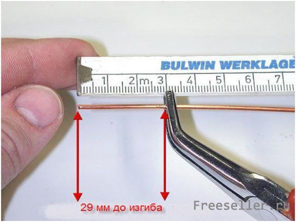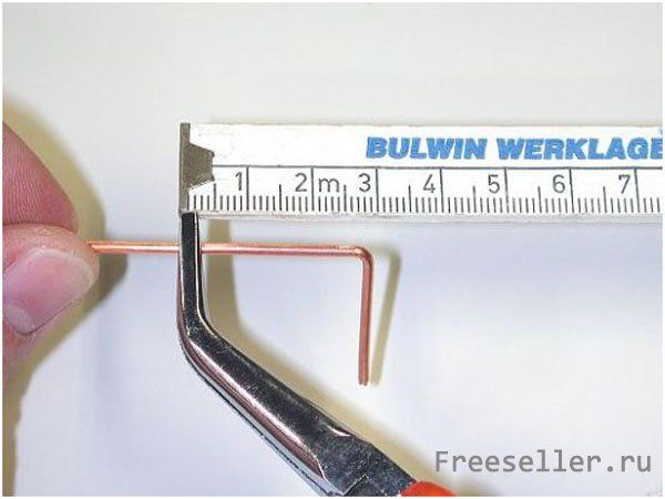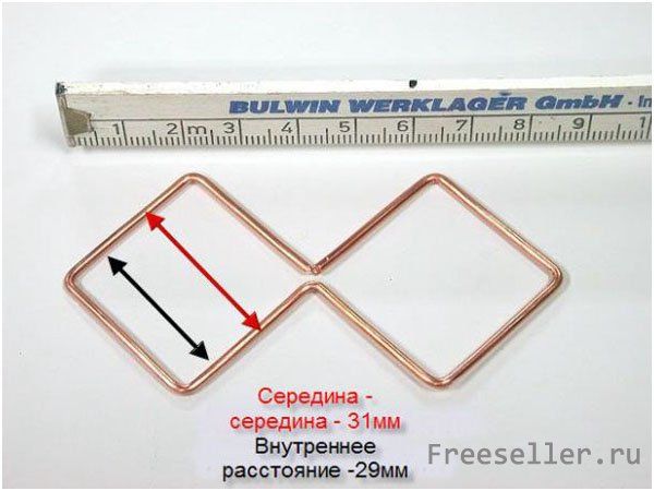 2) Зачищаем кусок медного провода, и начинаем сгибать из нее ромб. Нам нужно чтобы расстояние от середины до середины провода было примерно 30-31 мм.