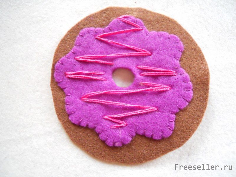 4. Возьмите толстую нить и пришейте зигзаги для "крема" к "глазури".