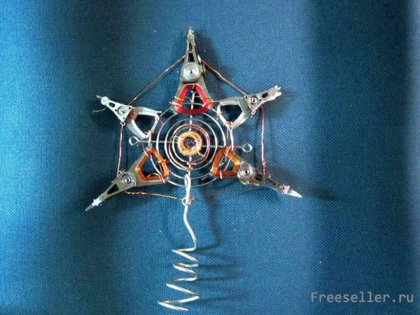 И завершающий момент - это изготовление звезды для елки, здесь используем головки чтения от жестких дисков.