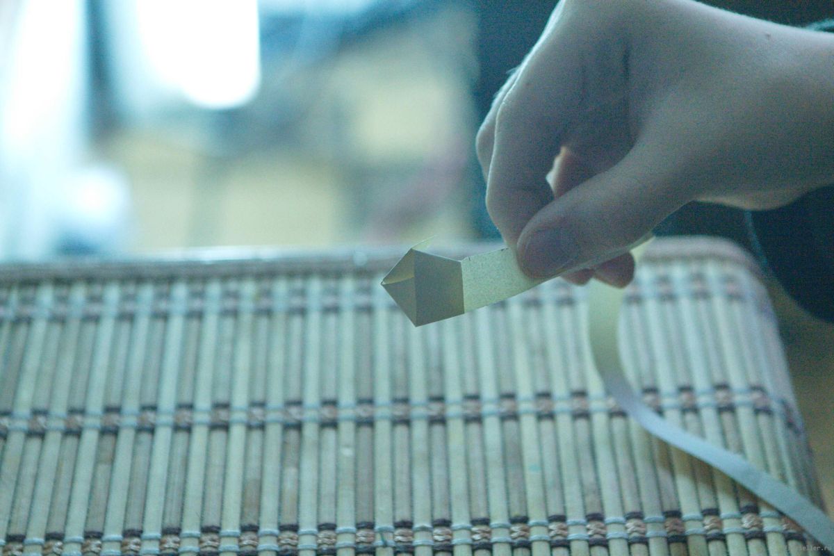 4) Заворачиваем хвостик на обратную сторону. Лучше постараться сделать хвостик короче, чтобы он не выглядывал за пределы пятиугольника.