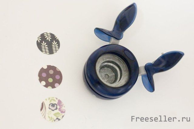 С помощью фигурного дырокола вырезаем бумажные картинки в соответствии с размером крышек из бутылок (если нет дырокола, можно вырезать картинки ножницами).
