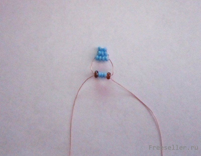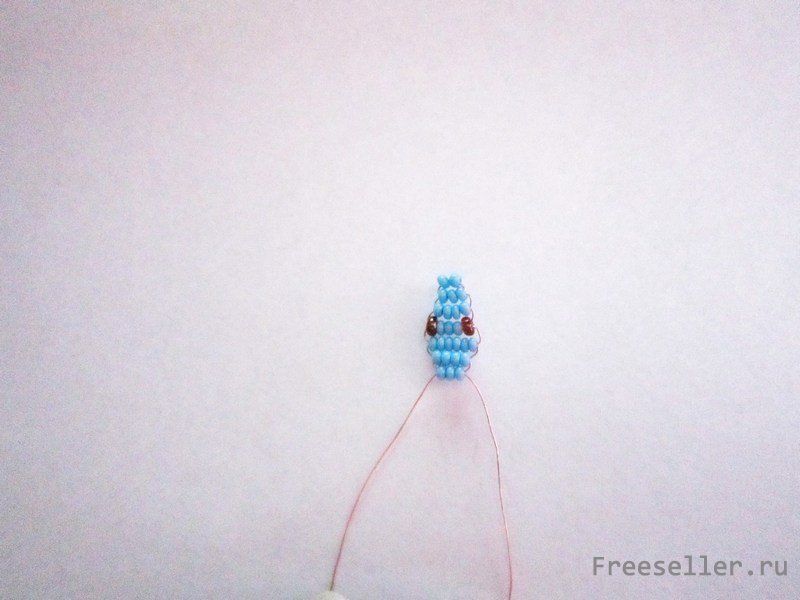 4 ряд-5 бусин (1коричн., 3 голуб., 1 коричн.). Это будут глазки.