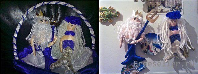 Сегодня мне захотелось сделать магнит на холодильник и игрушку для ребенка и вот такой Нептун с Русалкой у меня получился.