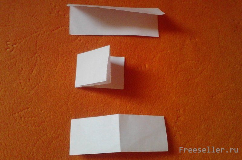 Делаем модули. Для этого, берем лист бумаги А4 и складываем в трое. Затем, разрываем бумагу по линиям сгиба. У нас получился не большой прямоугольник. Его нужно свернуть по вертикали, потом по горизонтали.