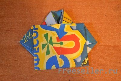 Переворачиваем и по диагонали складываем угли, отгибаем нижнюю часть и вуаля рубашка готова!!