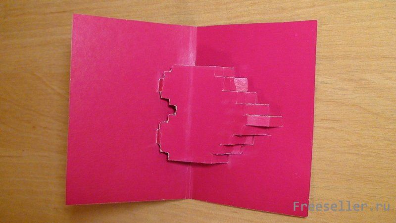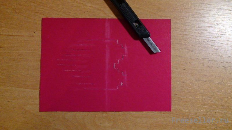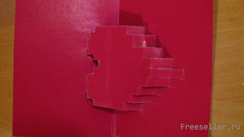 Вырезаем сердце канцелярским ножом. Главное не вырежете самые верхние две полосы нашего сердца, потому что именно они и будут опорой данного изображения.
