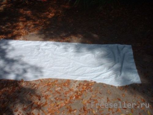 Расправляем ткань, если она не очень плотная, можно сложить больший кусок ткани вдвое.