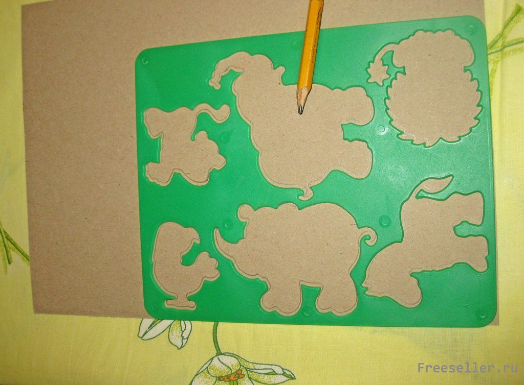 1 - накладываем трафарет на лист картона и обводим фигурки;