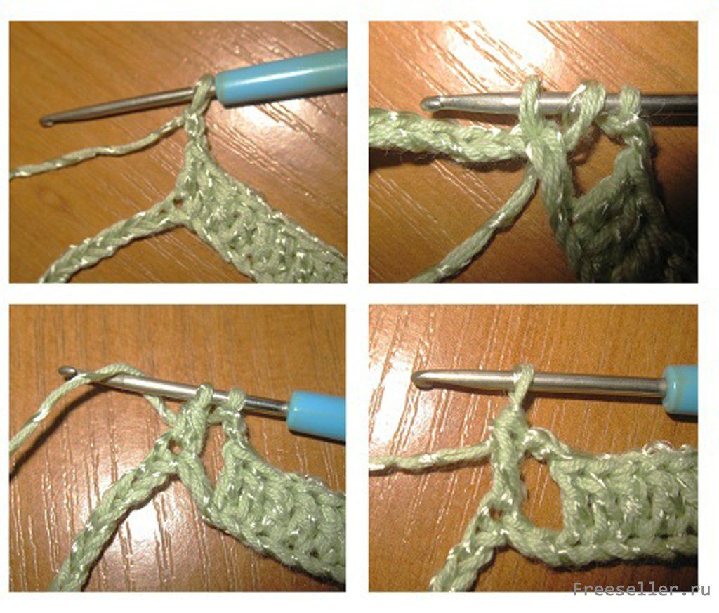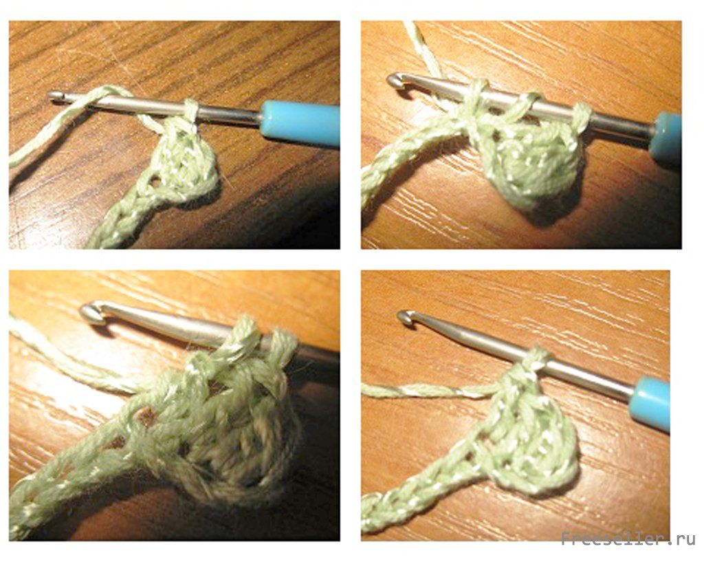 - 2 ряд - аналогично, в обратную сторону + 5 воздушных петель;