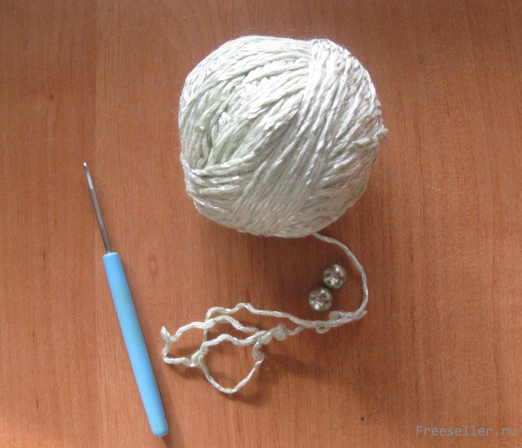 - 6 ряд - 14 столбиков с накидом, 5 дырочек, 3 столбика с накидом, 1 дырочка, 3 петли столбиком с накидом + 13 воздушных петель;
