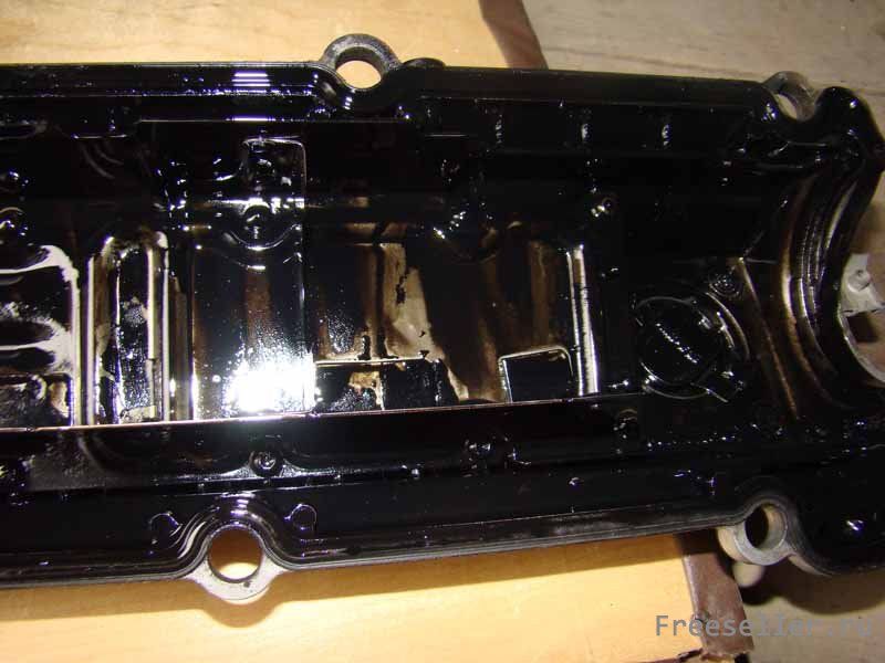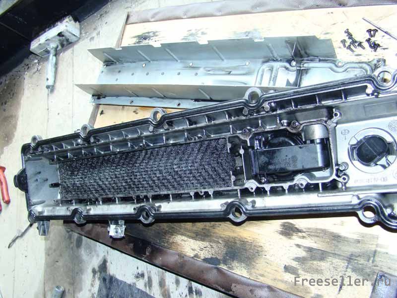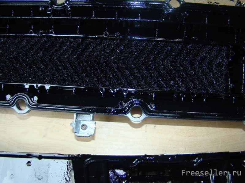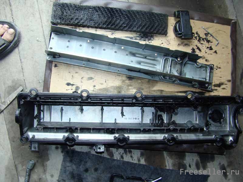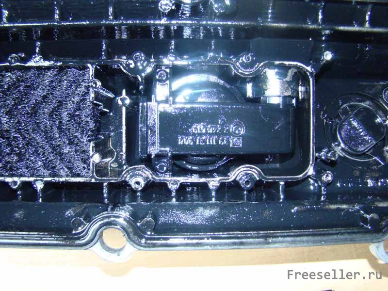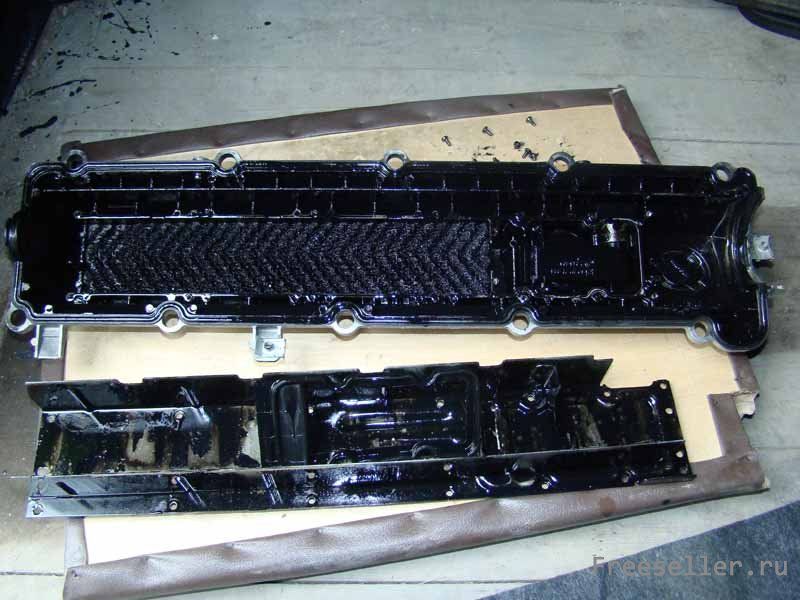 - Промойте клапанную крышку, перегородку, масло отделительную сетку керосином.