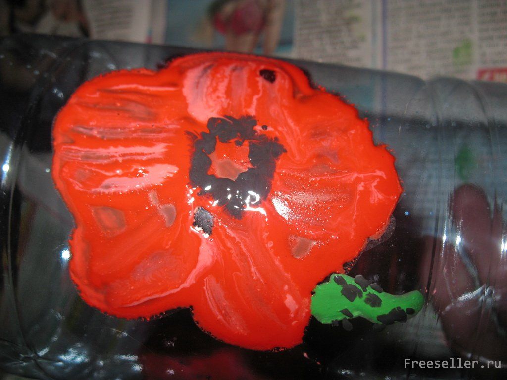 2) наносим цветочный рисунок (например, маки) на широкую полосу между бортами баночки без верха (можно заполнить всю площадь полосы рисунком, а можно сделать только отдельные элементы);