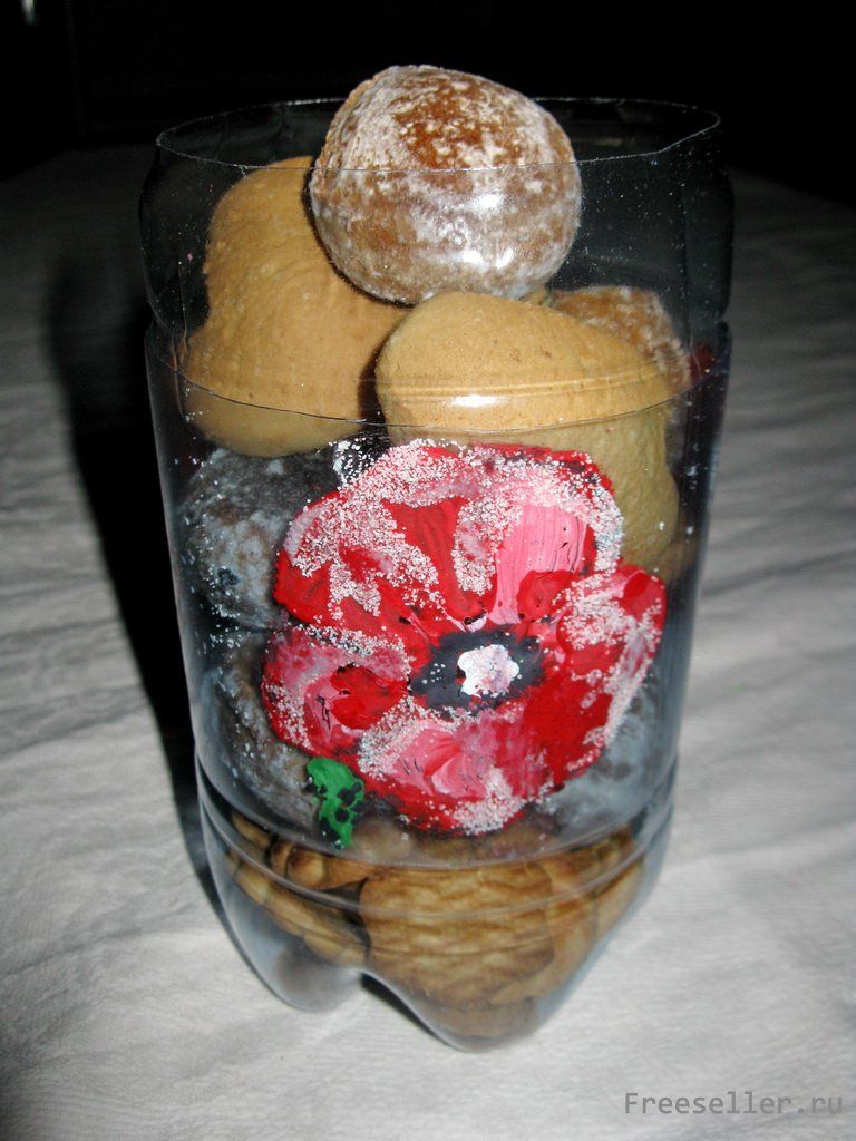 Баночку-вазочку можно также использовать в качестве вазы для печения, сахарницы (крышку, кстати, можно сделать из верха бутылки с пробкой), емкости для сбора ягод или для хранения всяких дачных мелочей (ключей, булавок, гвоздиков и т.д.)