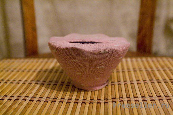 Продеваем на широкую вазу резинкой вверх. Готово!
