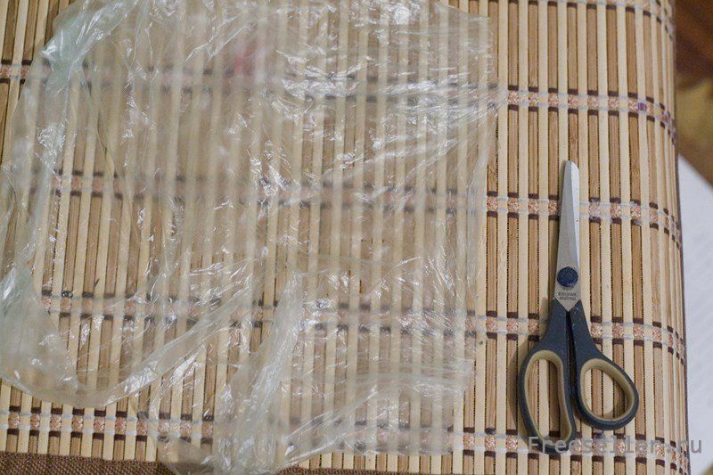 Делаем медузу из пакета:Отрезаем у пакета ручки.