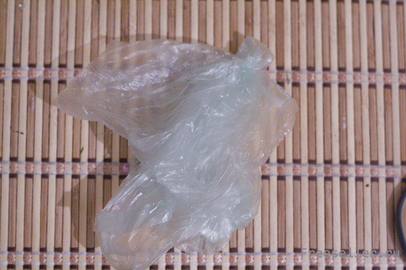 В получившейся сверху места свёртывания части пакета наливаем воды для балансировки.