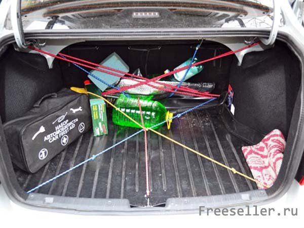 ![Сетка для фиксации груза в багажнике автомобиля своими руками.]()