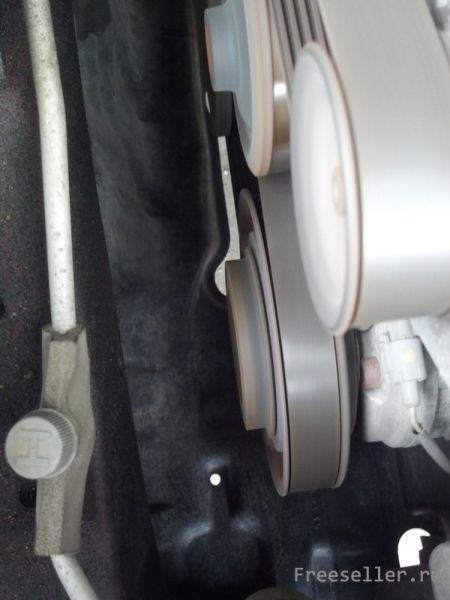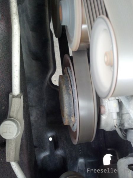 Компрессор кондиционера выключен. Обратите внимание, что вращается только внешняя часть шкива компрессора.