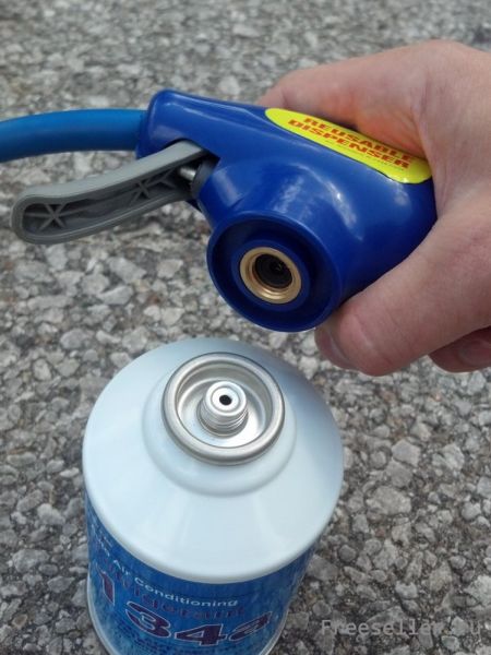 Итак, приступим, вставьте дозатор на банку с хладагентом.