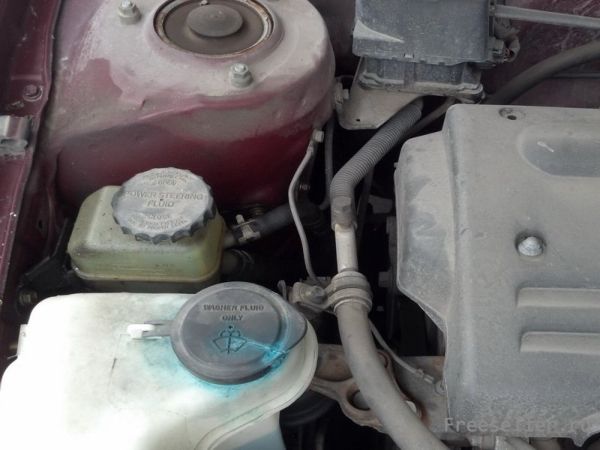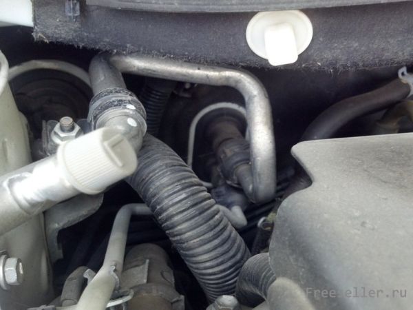 Трубка низкого давления с пластиковым колпачком обычно находится справа в районе бачка с омывающей жидкостью.