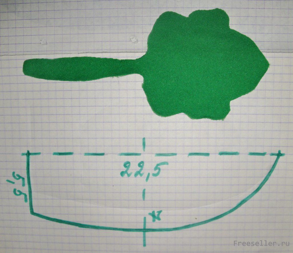 1) Делаем заготовку 1 сектора основы "тыквы": рисуем на бумаге по схеме ниже (низ - 5,5x2 см, центр - 7x2 см, длина 22,5 см);