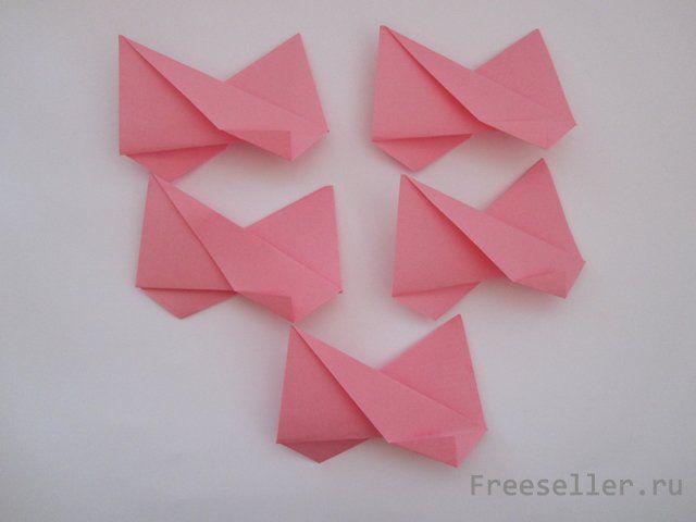Итак, нам понадобятся 5 квадратных листов бумаги. Лучше брать специальную бумагу для оригами. Она более прочная, имеет двухстороннюю окраску и хорошо подходит именно для этой техники.
