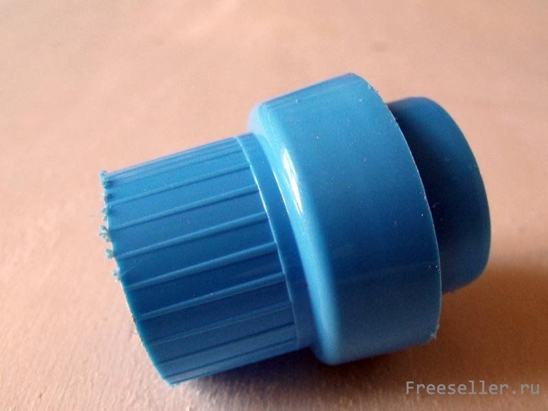 6) Как только с кольцами будет закончено, наденьте поверх крышку от бутылки. Обычно, насколько можно заметить, любая крышка имеет неприятный пластиковый цвет. К примеру, синий или красный. Нам же нужно будет придать ему другой цвет. Для этого достаточно будет взять акриловую не смывающуюся краску серого или серебристого цвета, и покрасить ею крышку. Если таковой не имеется, то просто наденьте на крышку ещё одно-два кольца, вырезанные из внутренней части велосипедной шины.
