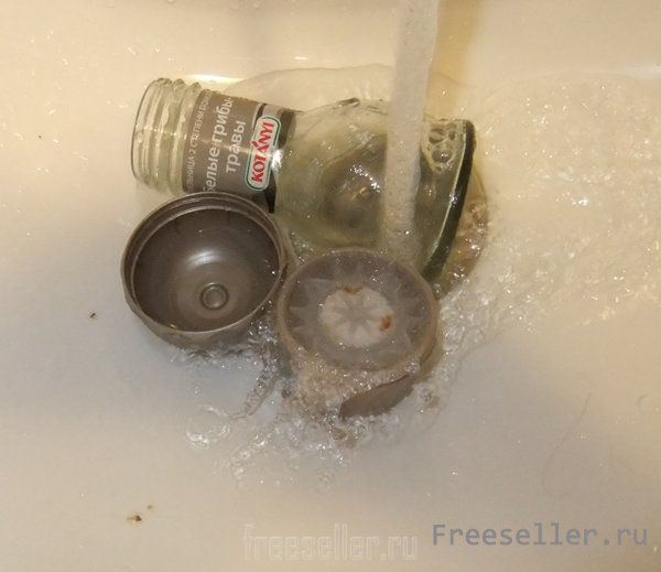 С небольшим усилием отделить сам измельчитель от стеклянного баллона и промыть все под струей воды.