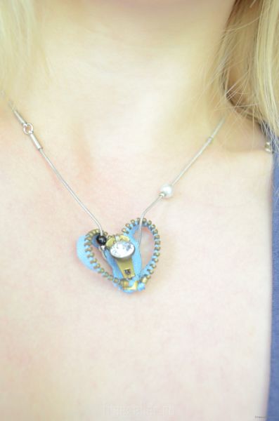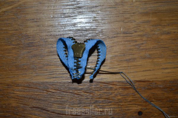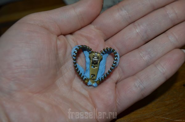 Две стороны молнии поочередно сгибаем и сшиваем кончик с ее началом. Таким образом, достигается форма сердца.
