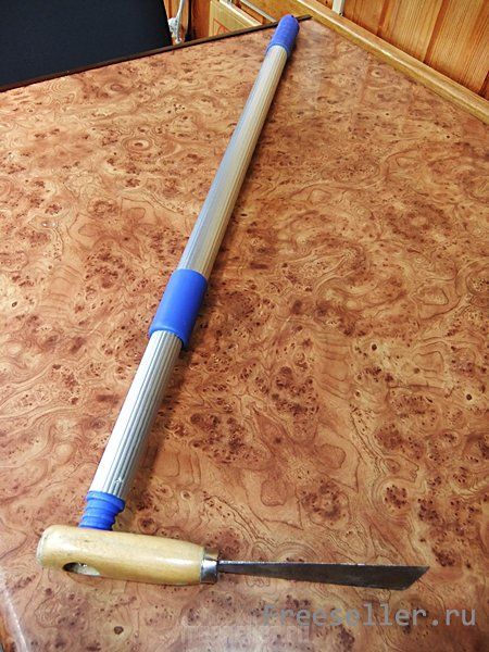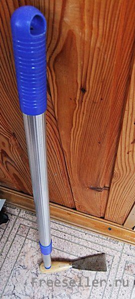 В данном примере взята легкая раздвижная ручка от половой швабры. У неё можно установить любую удобную для работы длину.