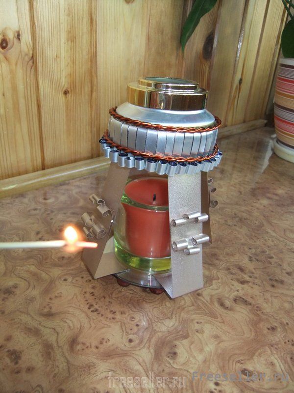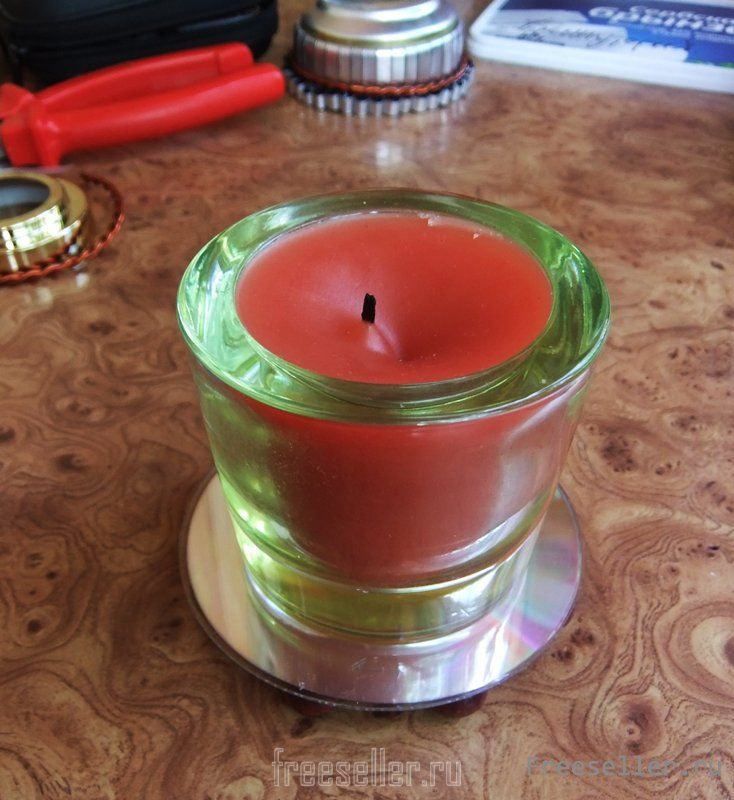 Наливаем сверху в выемку донышка ароматическую жидкость, поджигаем свечу и можем пользоваться.