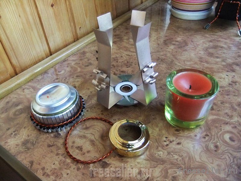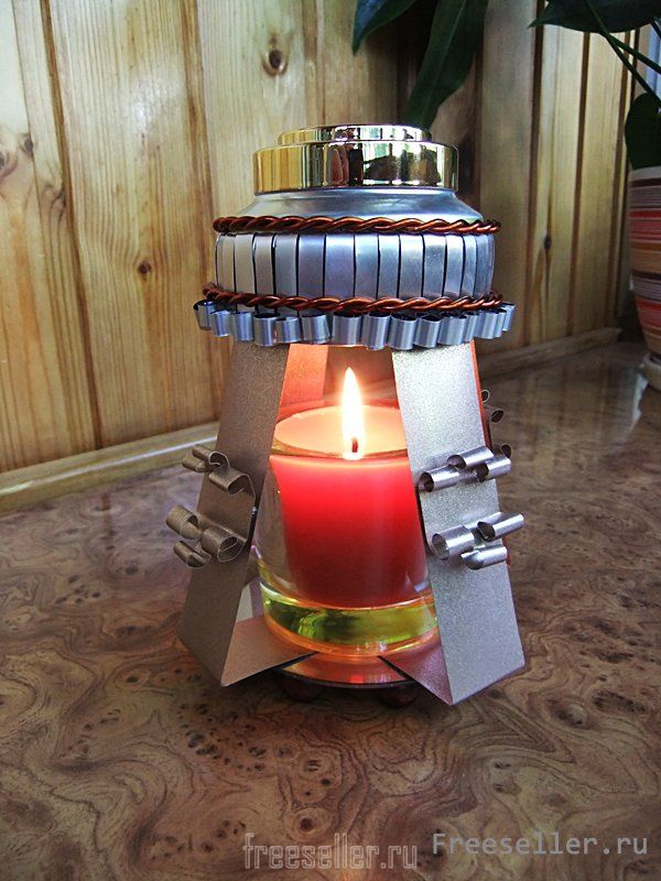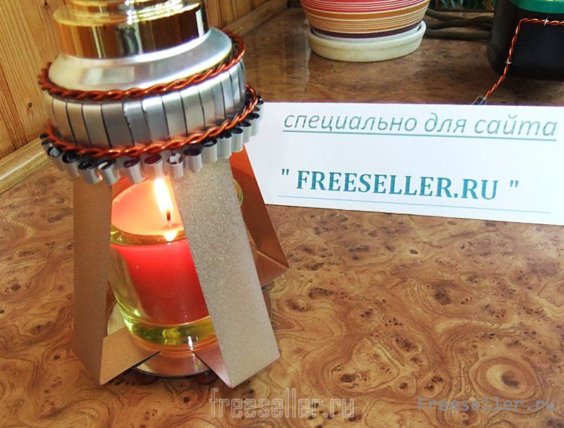 Из витой проволоки делаем кольца и устанавливаем на испаритель. Кроме украшения они будут еще и отбирать излишки тепла свечи.