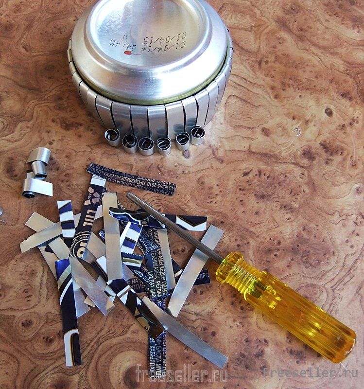 Стенку одной банки распускаем длинными ножницами на полоски шириной 5-7 мм.