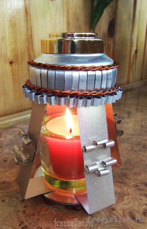 Вообще-то принято делать аромолампы из керамики, глины, гипса... А если нет времени, нет подходящих материалов, но обстановка требует создания ореола интимности и благоденствия - попробуйте предлагаемый выход из положения. Можно сделать поделку из пары пустых пивных баночек, свечи и маленького диска CD. Начинаем работу с того, что отрезаем у одной баночки горловину и у другой донышко.