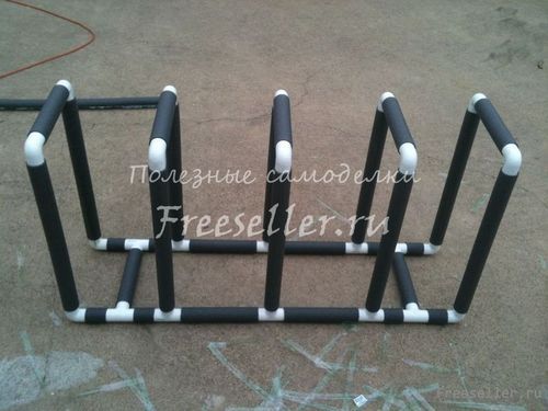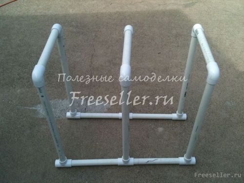 3) Используя 6 тройников и 4 нарезанные трубы по 40 см, спаял основной каркас подставки.