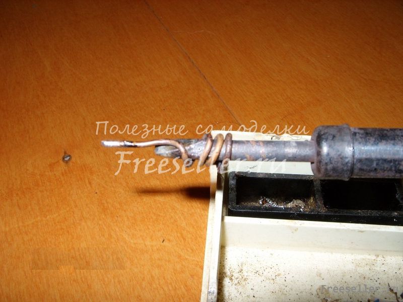 Электрод паяльника велик для данной работы. Выйти из положения можно путем его наращивания медным одножильным проводом сечением около 2,5 кв. мм.