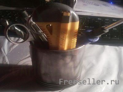 Для того чтобы оттереть нагар и мазут от поршня я использовал насадку на дрель.
