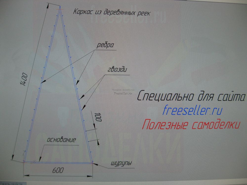 Итак, для начала изготовим каркас из реек. Ниже приведен чертеж каркаса.