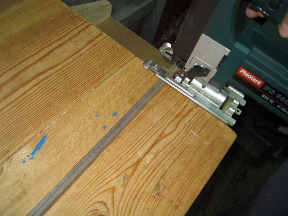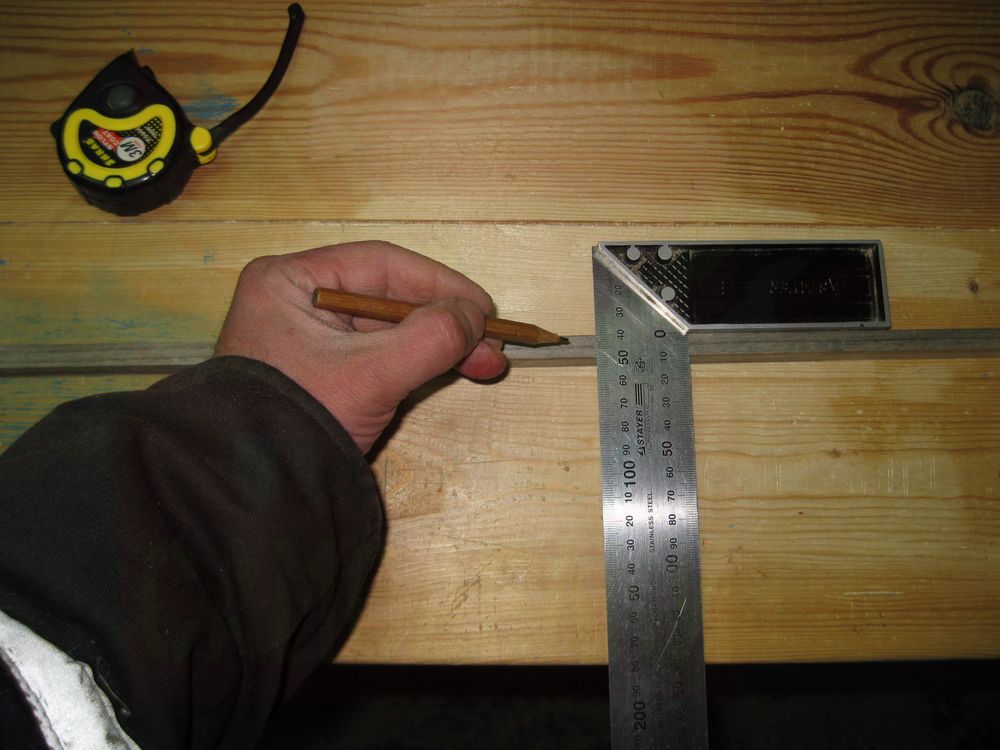 Сначала делаем разметку рейки и распиливаем ее на три части.