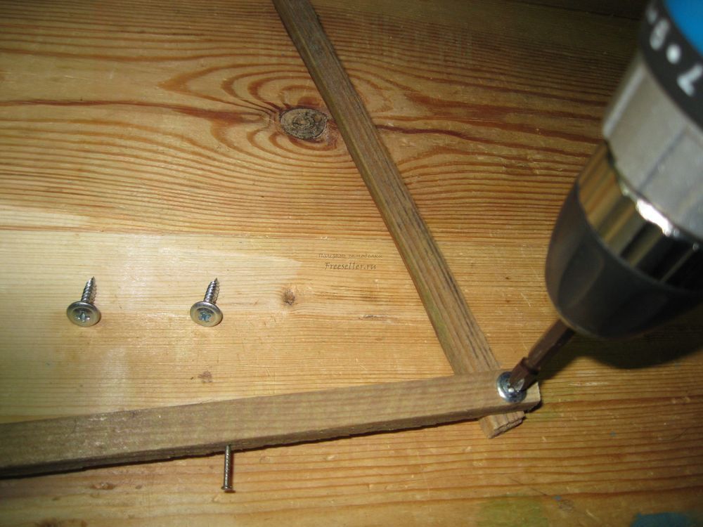 Затем сверлим отверстия на концах реек и соединяем их шурупами.