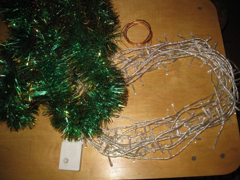 Теперь приступаем к наматыванию на наш каркас светодиодной гирлянды и окончательной отделке нашего украшения.