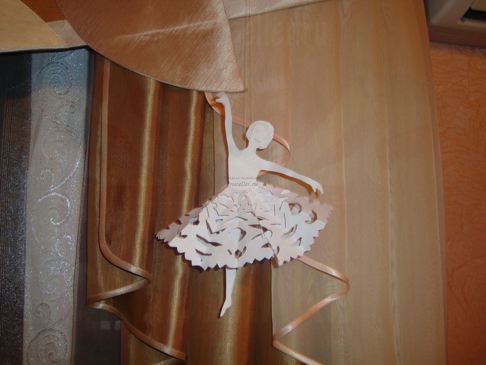С помощью нити привесьте балерину на шторы или к стене (воспользовавшись для крепления скотчем).