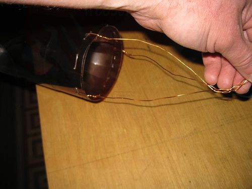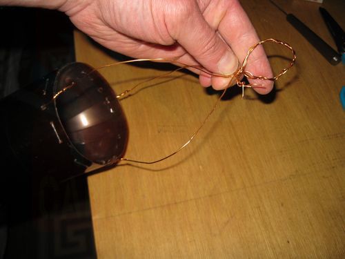 После этого прикручиваем проволочки для подвешивания кормушки.