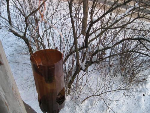 Теперь остается вывесить ее за окно, насыпать корм и ждать когда прилетят птички.