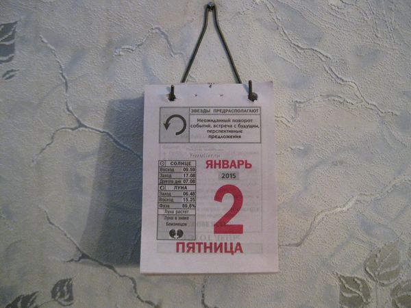 Причем меня постоянно удивляет, почему производители отрывных календарей не могут исправить этот недостаток, допустим сделав вверху каждой странички перфорацию (примерно как на туалетной бумаге), тогда бы эта проблема тут же была бы решена. Однако проходят годы, а дело так и не движется. В итоге приходится выкручиваться самостоятельно.