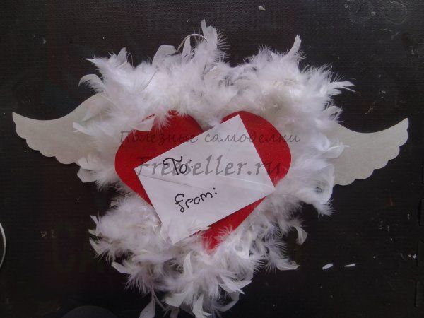 3. Сделайте крылья из белого картона и сердце из красного. Покройте сердце блёстками.